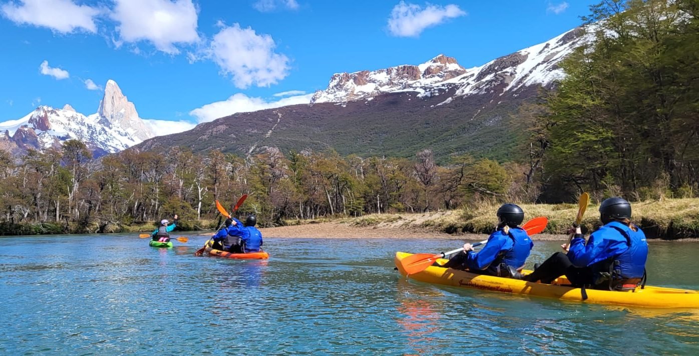 La experiencia de KAYAK inicia en la base operativa ubicada en El Chalten (Av. San Martin 872). Los guías entregan los equipos técnicos y de seguridad, necesarios para realizar la actividad. Según experiencia y disponibilidad el guía define quienes navegarán en sit-on-top dobles y quienes en kayaks de travesía simples que se destinan a quienes ya tienen experiencia.